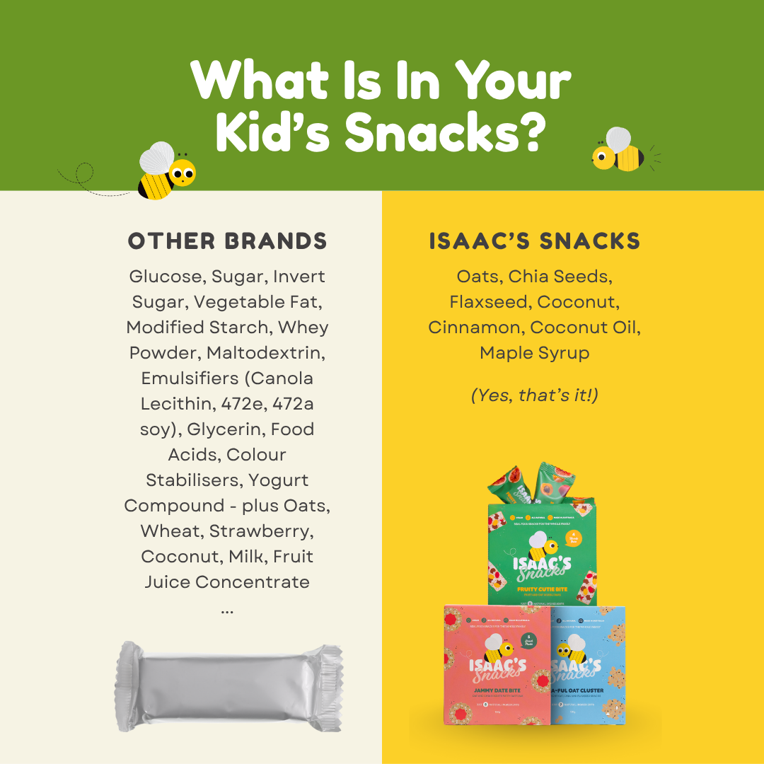 Our individually packaged snacks fit perfectly into lunchboxes, bags and desks.